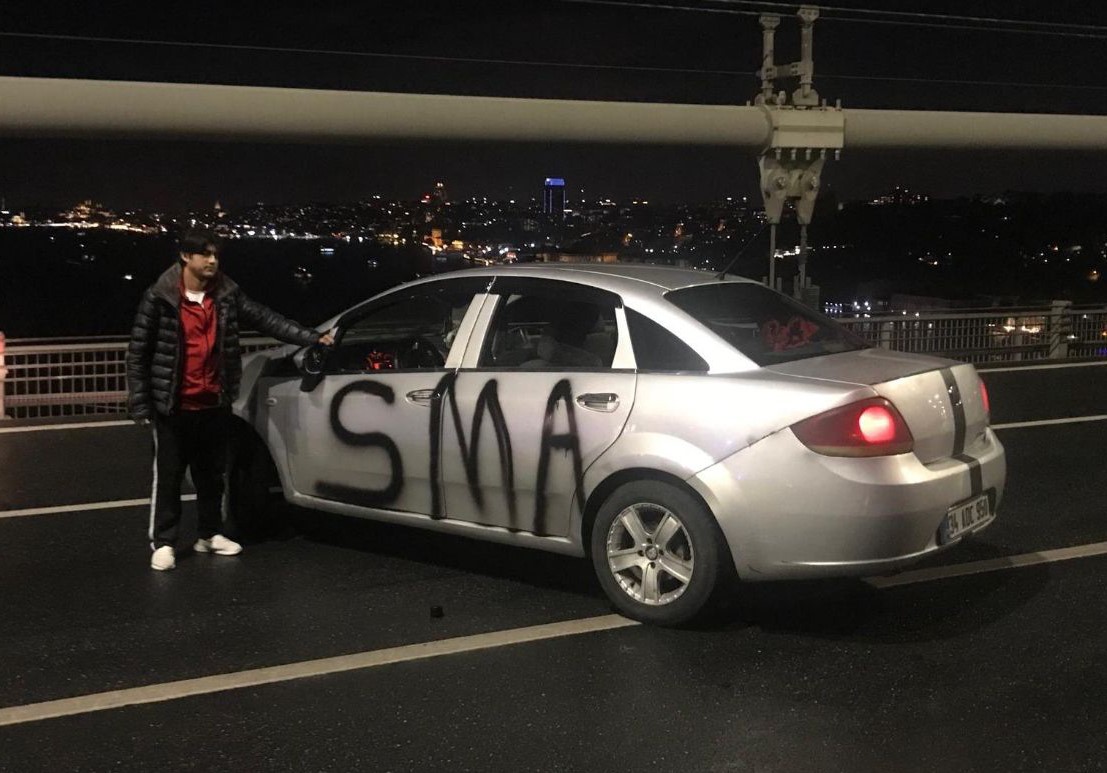 Edinilen bilgiye göre, saat 22.45 sıralarında şüpheli bir araç 15 Temmuz Şehitler Köprüsü’nde durdu. Şüpheli araç nedeniyle İstanbul Emniyeti alarma geçti. Aracın üzerinde “SMA” yazarken, trafik çift yönlü olarak durduruldu. Trafikte kilometrelerce araç kuyruğu oluştu. Olay yerinde polis ekipleri sevk edilirken, İstanbul Valiliğinden yapılan açıklamada, “Köprüde meydana gelen olayın bireysel bir eylem olduğunu değerlendiriyoruz. Emniyetiniz tedbir amaçlı köprü trafiğini durdurdu” ifadelerine yer verildi. Trafik akışı bir süre sonra Anadolu’dan Avrupa yönüne doğru açılırken, köprünün hala tek yönlü olarak trafiğe kapalı olduğu öğrenildi.
