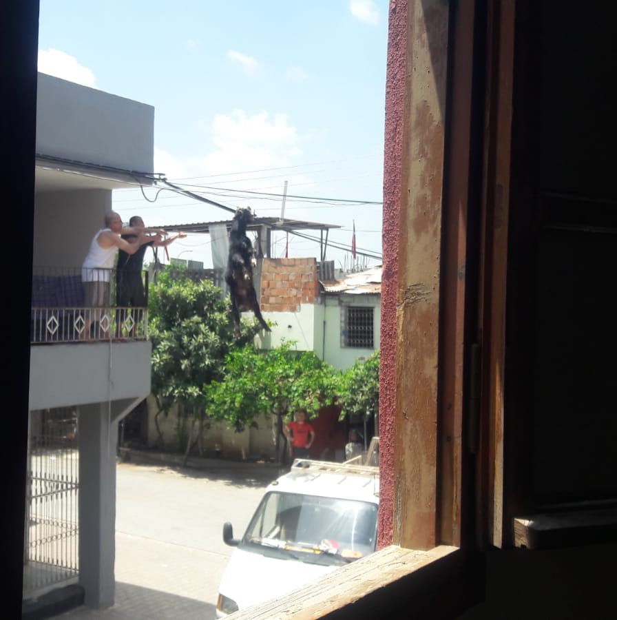 Sarıçam ilçesine bağlı Mehmet Akif Ersoy Mahallesi’nde kurban kesimi sırasında ilginç bir olay yaşandı. Damda bulunan keçi kaçmak için aşağı atladığı sırada hemen dam kenarında bulunan elektrik tellerine takılı kaldı. Kafası tele takılı kalan kurbanlığı vatandaşlar kurtarmaya çalıştı. Vatandaşlar uzun süre uğraştıktan sonra keçiyi takıldığı yerden kurtardı. Keçi daha sonra da kurban edildi.