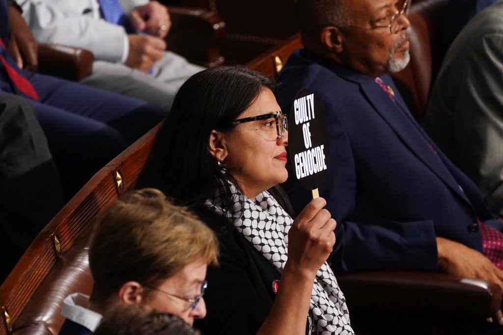 Temsilciler Meclisi’nin Müslüman kadın üyesi Tlaib’ten dövizli tepki: “Soykırım Suçlusu”