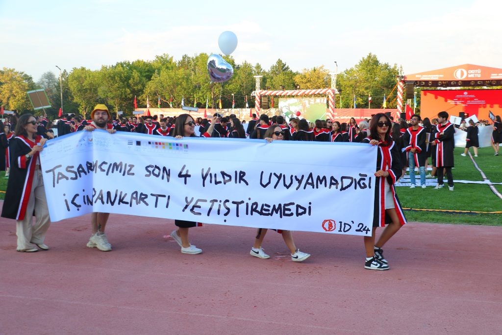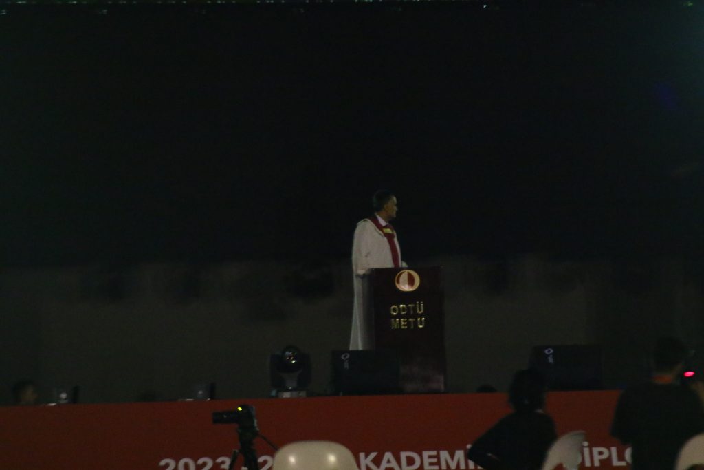 Orta Doğu Teknik Üniversitesi (ODTÜ), 2023-2024 eğitim öğretim yılı mezuniyet töreni ODTÜ Stadyumu’nda gerçekleştirildi. ODTÜ Rektörü Prof. Dr. Ahmet Yozgatlıgil’in hitap konuşmasını gerçekleştirdiği sırada sahnede bulunan elektrikler kesilerek rektör protesto edildi.