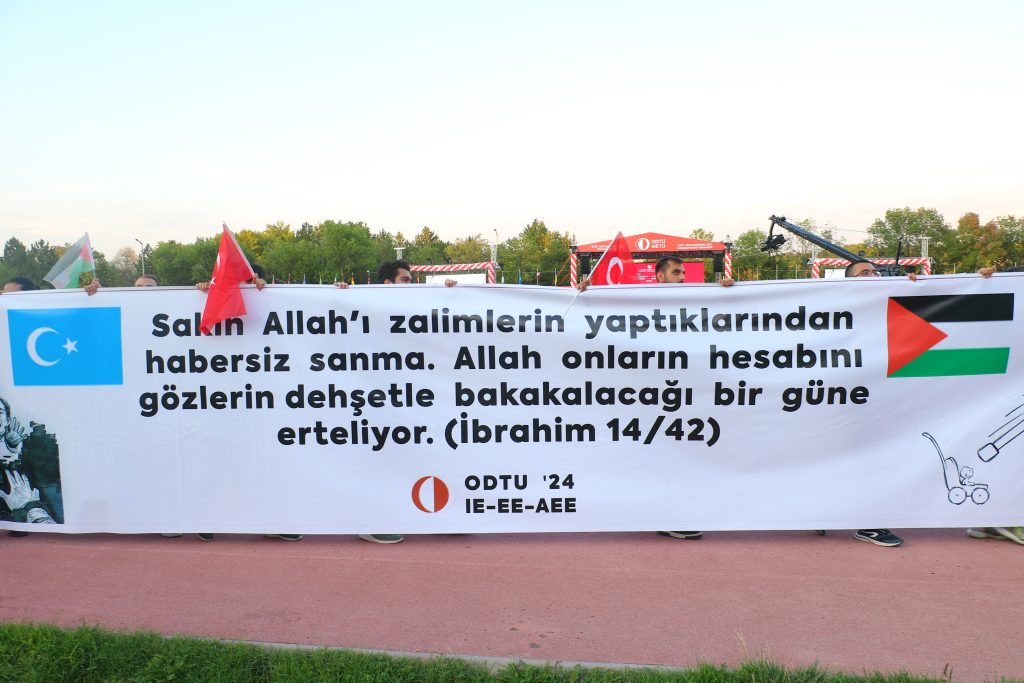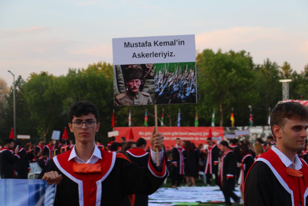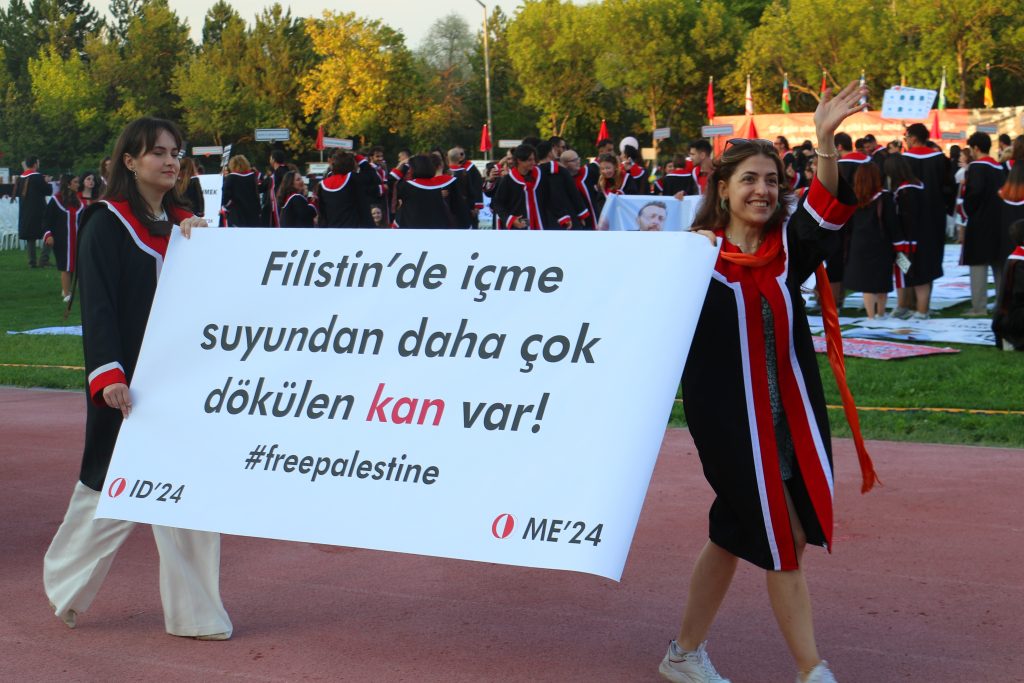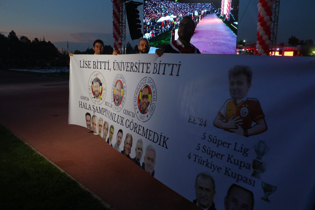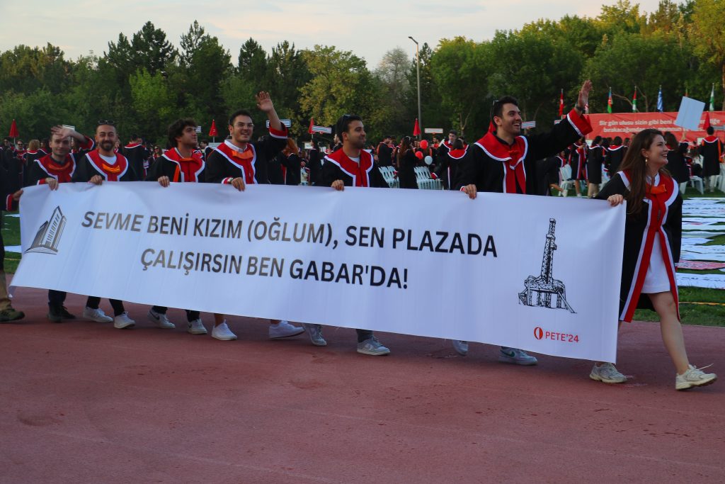 ODTÜ’nün 2023-2024 eğitim öğretim yılı mezuniyet töreni, ODTÜ Devrim Stadyumu’nda gerçekleştirildi. Her sene geleneksel olarak ODTÜ Stadyumu’nda düzenlenen toplu mezuniyet töreni saat 18.00’da başladı. Öğrencilerin açtığı pankartlar, güvenlik kontrolünden geçerek stada kabul edildi. Bando eşliğinde çalınan marşlarla başlayan tören, öğrencilerin cübbeleriyle pankart açarak gerçekleştirdikleri kortejle devam etti. Renkli görüntülerin de yaşandığı kortej anı, Kadir Yavuz’un Moleküler Biyoloji ve Genetik Bölümü mezunu Eda Almeriç’e yaptığı evlilik teklifine sahne oldu. Kortejde şehit öğretmen Şenay Aybüke Yalçın doğum günü de öğrenciler tarafından unutulmadı. Eğitim Fakültesi öğrencileri tarafından Aybüke Öğretmen pankartları açıldı.