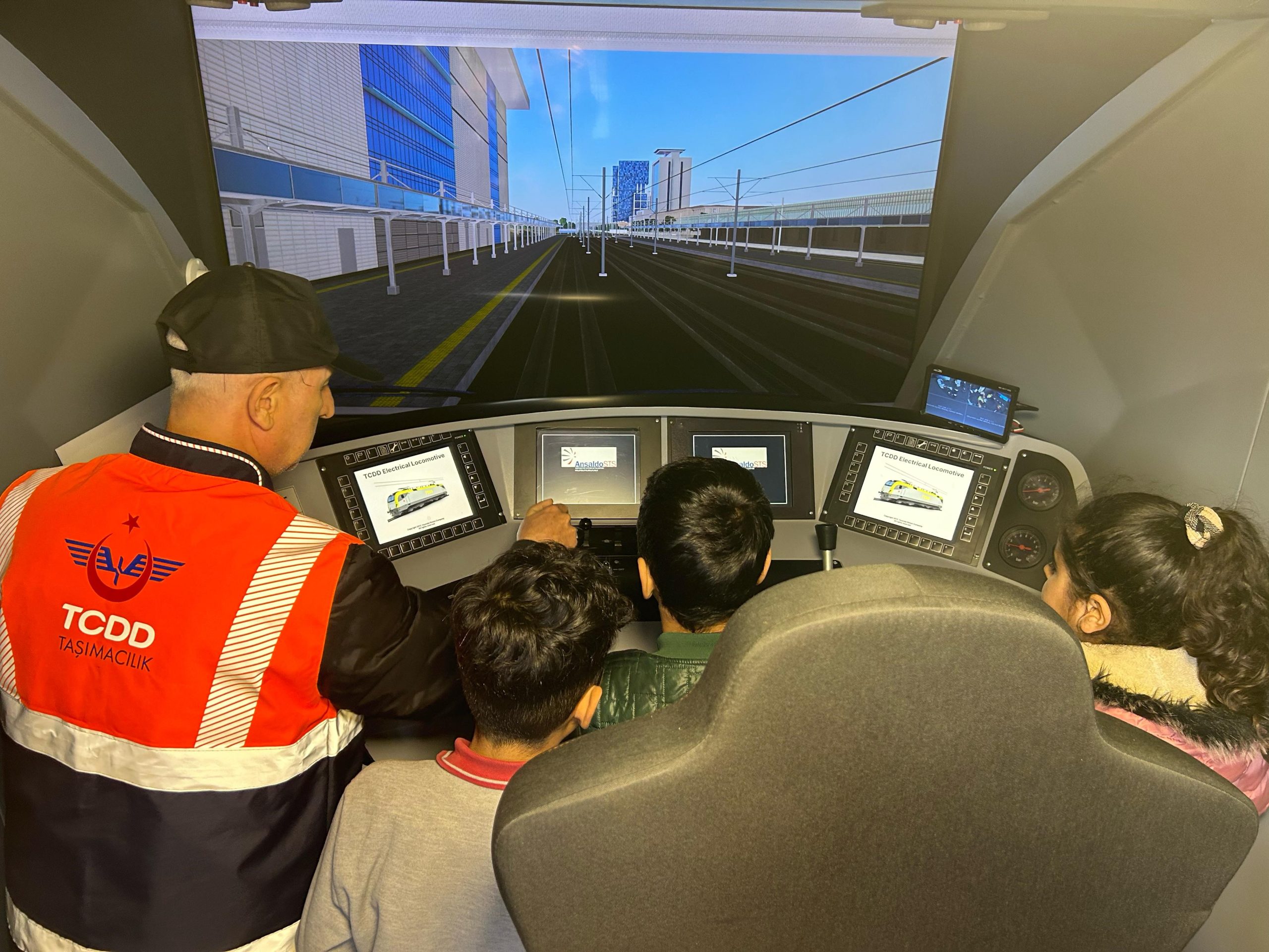 TCDD Taşımacılık İzmir Bölge Müdürlüğü ve Turgutlu İlçe Milli Eğitim Müdürlüğü işbirliğiyle Turgutlu Mehmet Gürel İlkokulu’nun bahçesine kurulan simülatörde, öğrencilere demiryolu araçlarının kullanımı ve demiryolu güvenliği hakkında uygulamalı eğitimler verildi. Baş makinistler Hüseyin Karakurt ve Yıldırım Özdemir, öğrencilere simülatörün nasıl kullanılacağını gösterirken, demiryolu güvenliğinin önemini de vurguladı.