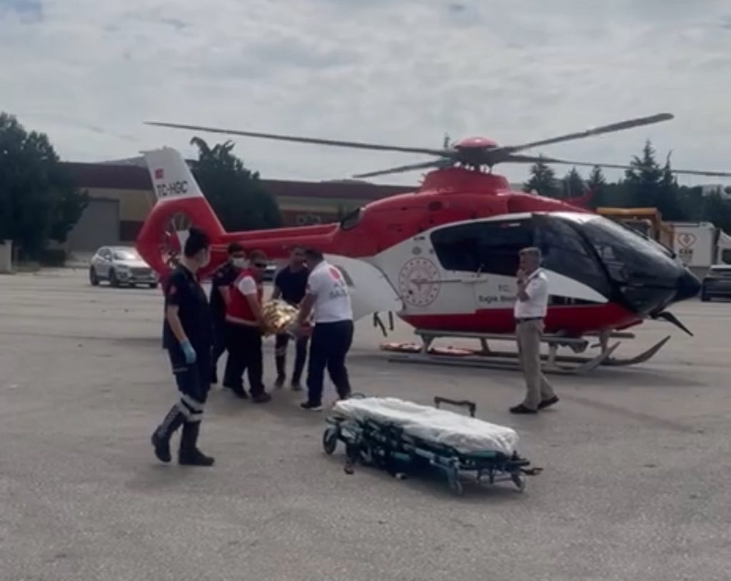Açık alana indirilen yaşlı kadın sağlık ekiplerince yapılan müdahalenin ardında helikopter ambulansla Hitit Üniversitesi Erol Olçok Eğitim ve Araştırma Hastanesi’ne sevk edildi.
