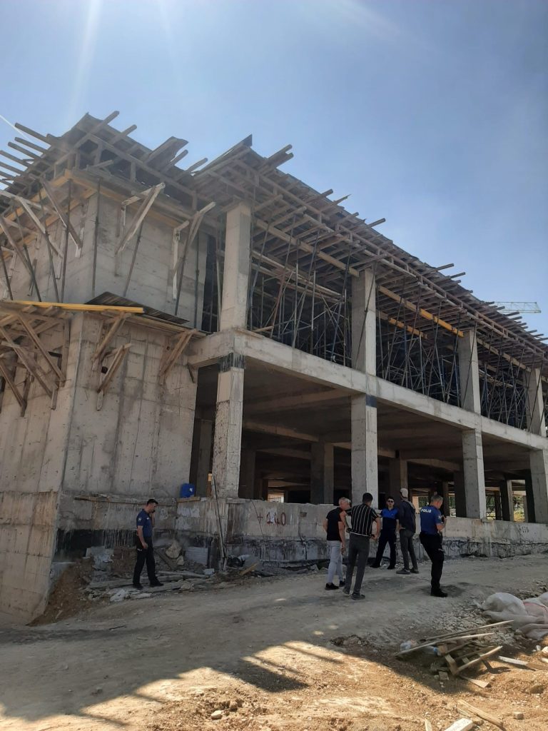 Sınav saatinde bir inşaatta 100 işçi aynı ayda çalışırken, zabıtaya güçlük çıkardılar