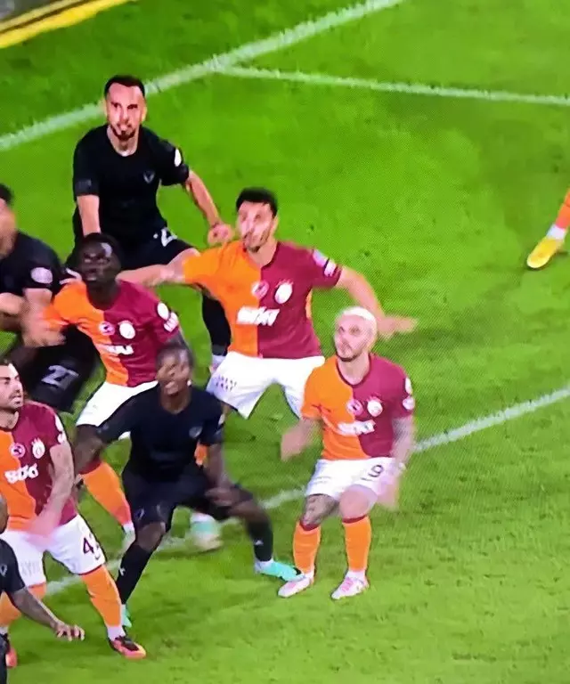 Karşılaşmanın 90+8. dakikasında yaşanan bir pozisyon ise sosyal medyanın gündemine oturdu. Galatasaray’ın kullandığı kornerde Mauro Icardi, hava topuna çıkmak isterken yerde kaldı. Devam eden pozisyonda Kaan Ayhan’ın kafa vuruşu auta gitti.