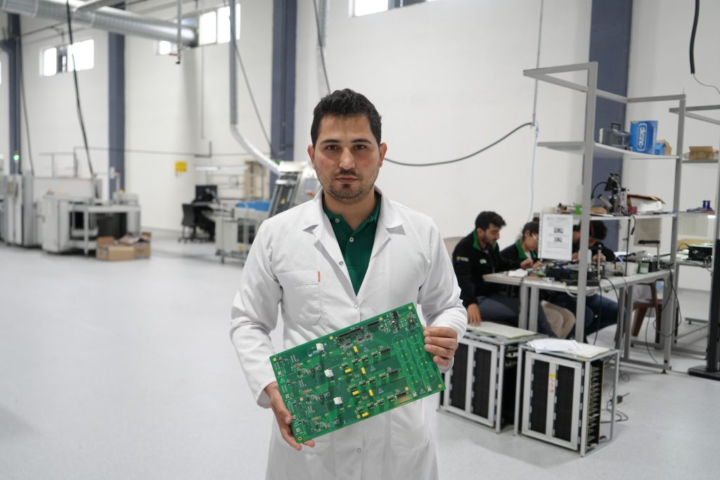 Teknolojik cihazlar için gerekli çok katmanlı kartların yazılımını ve üretimini ekibi ile birlikte yapan Elektrik, Elektronik Mühendisi Hamza Solak, Türkiye’de sadece iki katmanlı üretimin olduğunu ve bu sayısı 8-9 katmana çıkardıklarını söyledi.