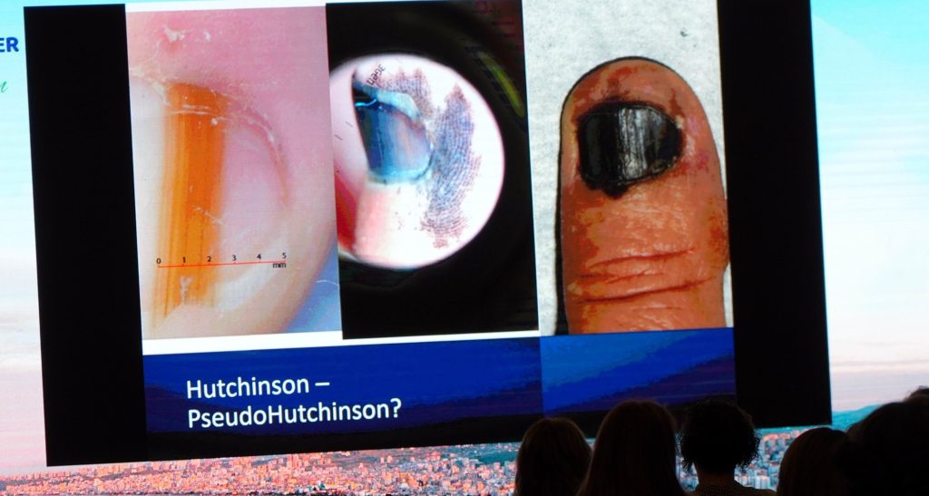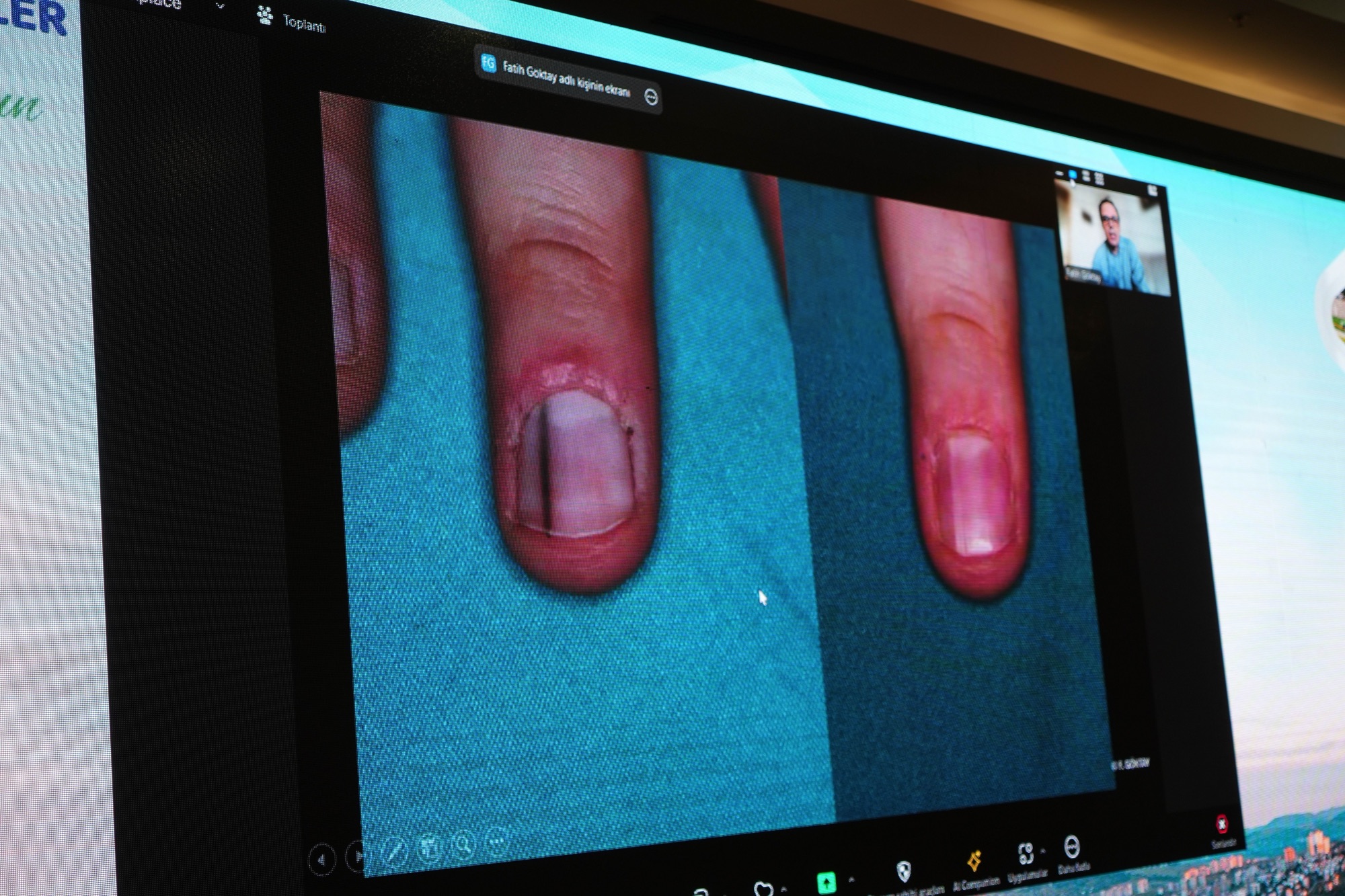 Tırnak diplerinde görülen lekelere de değinen Prof. Dr. Özden, “Sempozyumumuzun en ana konularımızdan ilkinde çıban ya da ‘köpek memesi’ hastalığı olarak bilinen hastalıkların tedavisindeki büyük gelişmelerden bahsettik. Bu da yeniliklerin bir tanesiydi. Tırnaklarda lekeler, daha doğrusu siyah çizgilenmeler cilt altı kanserinin bir bulgusu olabilir. Aynı cildin herhangi bir yerinde cilt kanseri görülebileceği ve bir ben gördüğümüzde bunun bir dermatolog tarafından bilgisayar desteğinde muayene edilmesi gerektiği gibi tırnak dibinde de bu gelişebilir ve tırnak dibinde görülen bir siyah leke gerçekten ciddi anlamda bilgisayarla muayene edilmesi gereken bir cilt kanseri öncüsü olabilir. Cilt kanseri erken müdahale edilirse hayat kurtaracak, yüzde 90 şifa sağlanacak, iyi huylu bir tedavi ile düzelebilecek tümörken, geç kalındığında çok hızlıca ölümcül olabilecek, şiddetli ve agresif bir tümördür. Bu nedenle erken teşhis çok önemlidir” diye konuştu.