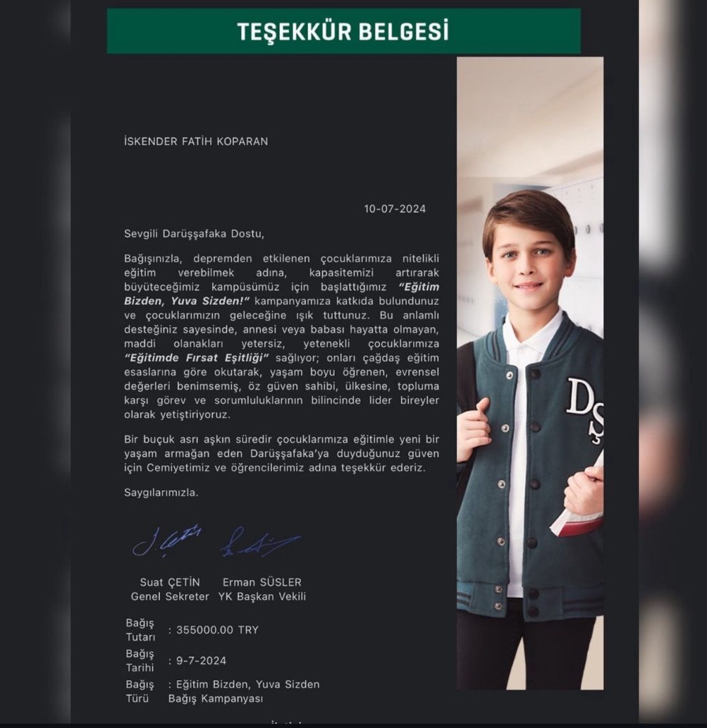 Daha öncesinde Ümit Özdağ hakkında tüyo Başlıklı paylaşımı ile gündeme gelen YouTuber Fatih Koparan, Bu sefer de YouTube’dan kazandığı 355 bin TL’lik gelirin tamamını Darüşşafaka’ya bağışlayarak depremden etkilenen çocuklara destek olarak gündeme oturdu.